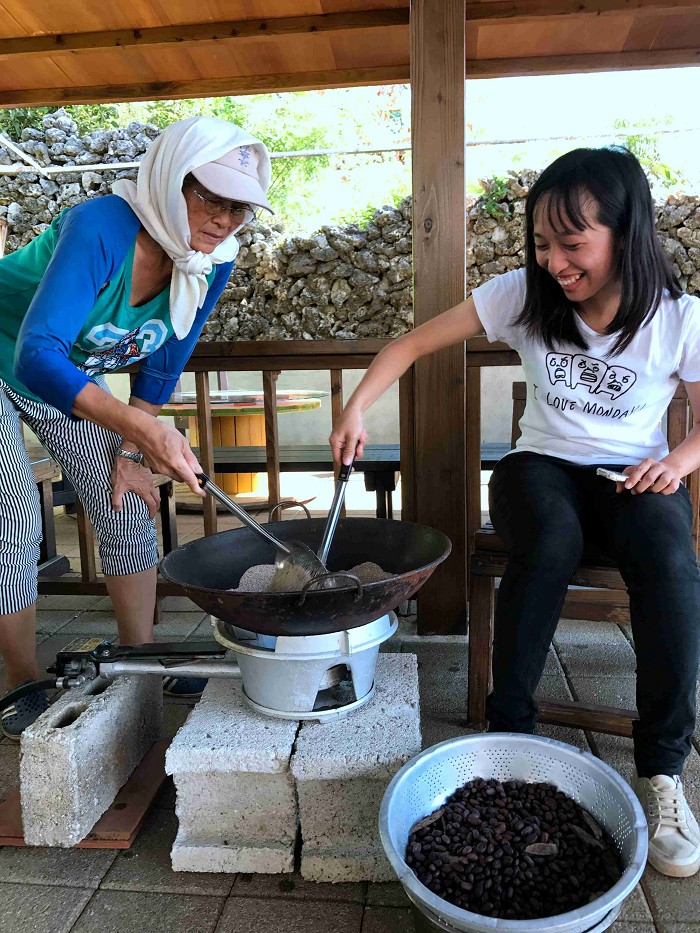 種完花生,輪到炒花生囉~加入海砂,炒熱後加入花生及祕密香料,20分鐘後就可以吃囉!自己辛苦炒出來的花生無論如何都是最美味的~