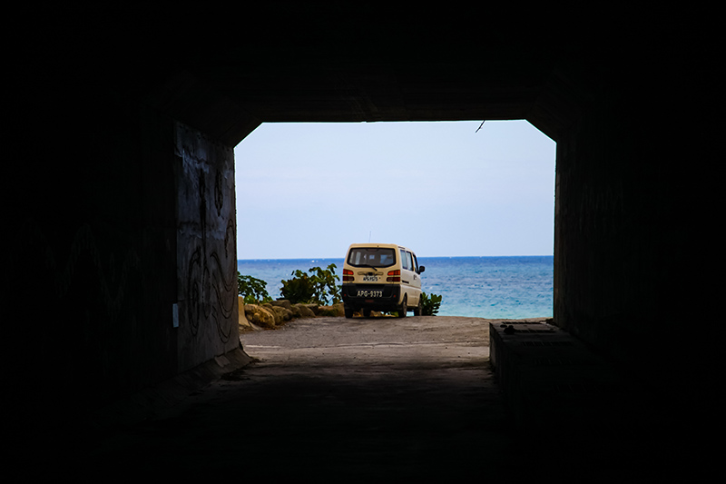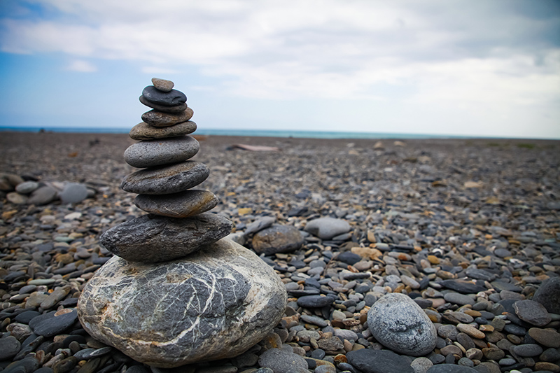 想往海灘走去,首先得先穿過一個小小的隧道;眼前的畫面,彷彿把大海鑲嵌在框裡,一幅隨著陽光變化的美景,難怪被大家譽為最美的隧道。礫石灘上,不知為何出現一落一落被人堆疊起來的鵝卵石散落著,吸引著我也不知不覺開始疊出一座紀念,留下到此一遊的痕跡。