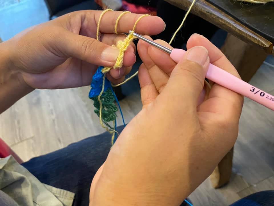 織女們圍在一起,一邊話家常一邊手裡鉤織著美麗的作品,小至杯墊大至手提包,還有因應新冠肺炎疫情而生的「口罩延伸帶」,解救大家被口罩耳繩勒紅的耳朵,除了利用苧麻線鉤織的織品外,織女們也會使用線材與海廢,加上織女擅長的鉤織技法,將原本破碎的貝殼、小石頭、漂流木變成美麗的飾品或裝飾物,讓大家可以將屬於都蘭的海邊記憶收藏起來。