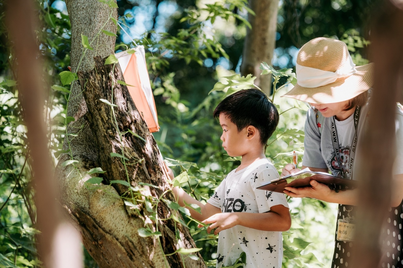濕盟活用園區的動植物寶庫,量身打造濕地版「定向越野」活動,孩子們依循手裡的地圖前行或轉彎,從指定位置的橘白標誌旗尋找線索,有時彎下腰觀察葉脈而描繪紋路,有時湊近果實嗅聞氣味後做著紀錄,偶爾不同組別相遇在同一條步道上,笑聲與驚呼聲穿梭在樹林之中,透過導覽志工的生動解說,全部變成有趣好玩的童玩、小零食,也拉近孩子與自然的距離,開始學習觀察周遭事物,潛移默化宣導生態保育的觀念。