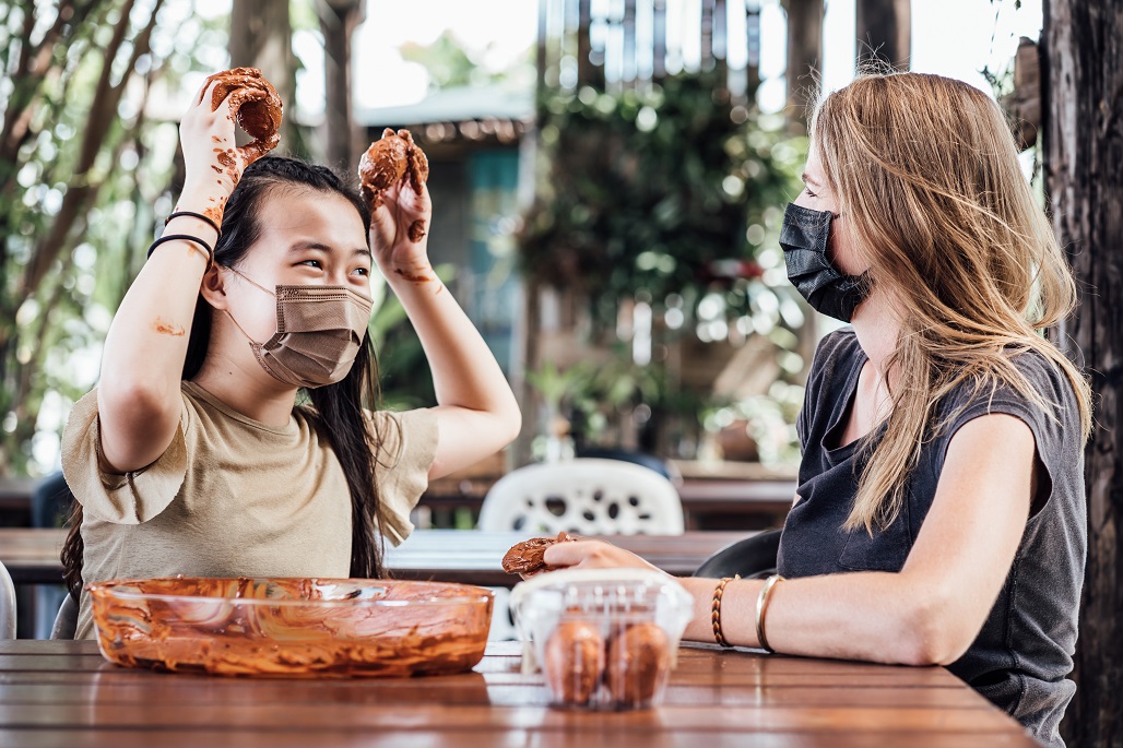 手作披薩體驗也很受大小朋友歡迎,披薩上的餡料、醬料全都來自農圃就地取材,講求以原型食物呈現,沒有多餘添加,像是用小番茄取代市售的番茄醬,具有香氣的巴西乳香木則可替代調味常用的胡椒鹽。由於食材順應時令,每一回的披薩口味都不一樣,但不變的是新鮮、天然的食材魅力。「曾經有遊客為了這一味,陸續造訪至少10次,而且披薩口味居然都沒有重複過!」林淑惠笑說。