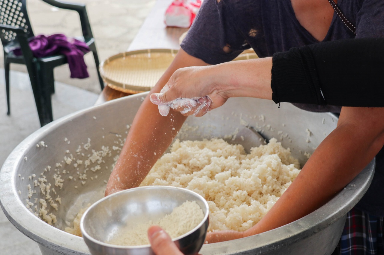 在活動開始前,就可以看到部落的長輩和年輕人們在為今天的豐年祭做準備。一大鍋細心悶煮的糯米、玻璃瓶以及一小盞神秘的粉末。等到報名參加的遊客陸陸續續到齊之後,主持人才開始說起甜酒釀以及他們部落的故事。在古老年代的原住民發現,有一些植物具有催化劑的效果,讓平淡無奇的澱粉類作物增添意想不到的甜味與酒香,後來被稱為酒麴植物。然而,各地的氣候環境以及當地植物植被的不同,每個地方都有獨特的香氣與口感。