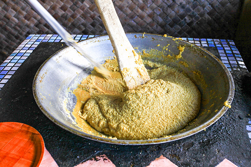 老人家感動地濕了眼眶,眼淚是鹹的,一口口用眼淚配著整鍋小米飯,這就是蓋亞那得一直延續小米文化的使命感。