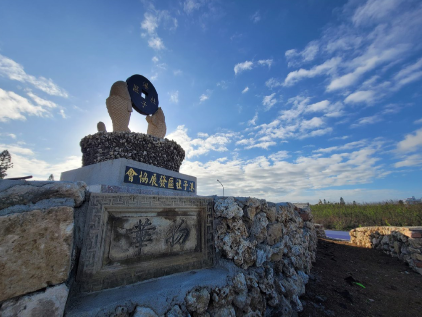 12月的澎湖列嶼經常刮著凜冽的寒風,船班和小飛機時刻不定,是許多遊客避開前往的季節。位於澎湖本島偏北的白沙鄉港子社區,縣道203號公路穿行而過,從馬公市沿路北上,即可看見矗立馬路邊的社區意象平台。平台以硓咕石堆疊而成,上有雙魚抱銅錢,寫著「港子社區」的字樣,仔細一看,底下的石塊間還綴著或大或小的招潮蟹浮雕,招呼往來的遊客。