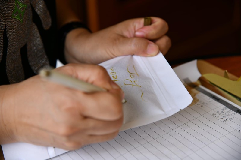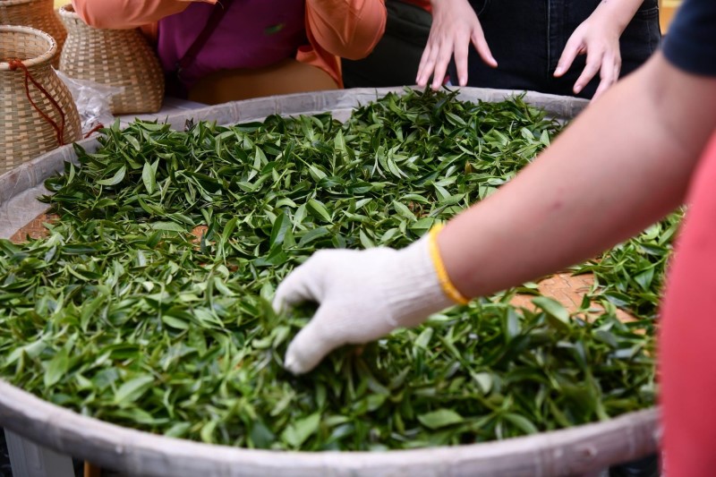 來到工作室檢查剛剛採摘的新鮮茶葉~